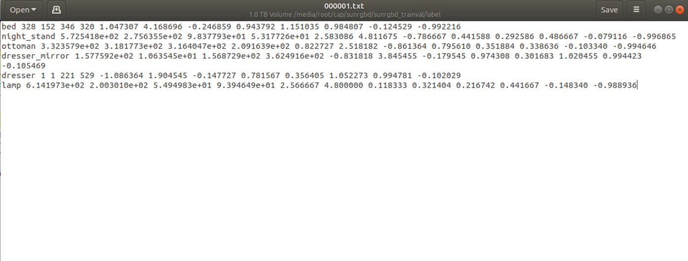 4개의 서로 다른 센서로 캡처되며 PASCAL VOC와 비슷한 규모로 10,000개의 RGB-D (D는 Depth 정보)이미지를 포함합니다. 전체 데이터 세트는 조밀하게 주석이 달려 있으며 정확한 객체 방향이 있는 146,617개의 2D 사각형과 58,657개의 3D 바운딩 박스, 장면에 대한 3D 공간 레이아웃 및 범주를 포함합니다.