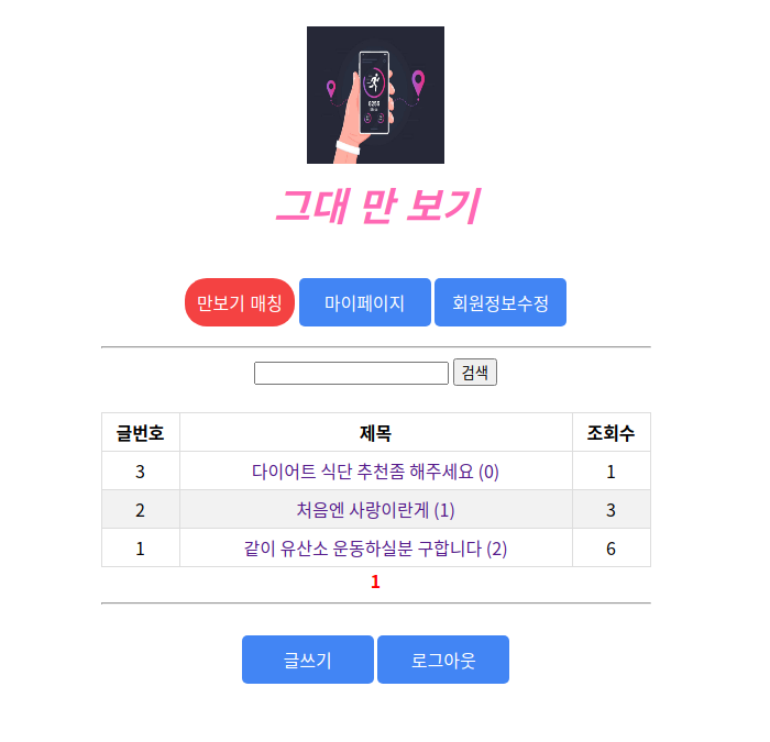 먼저 첫화면에 글 목록과 어떤 글에 댓글수, 조회수등을 볼수 있고 제목을 클릭하면 그 글로 이동합니다.